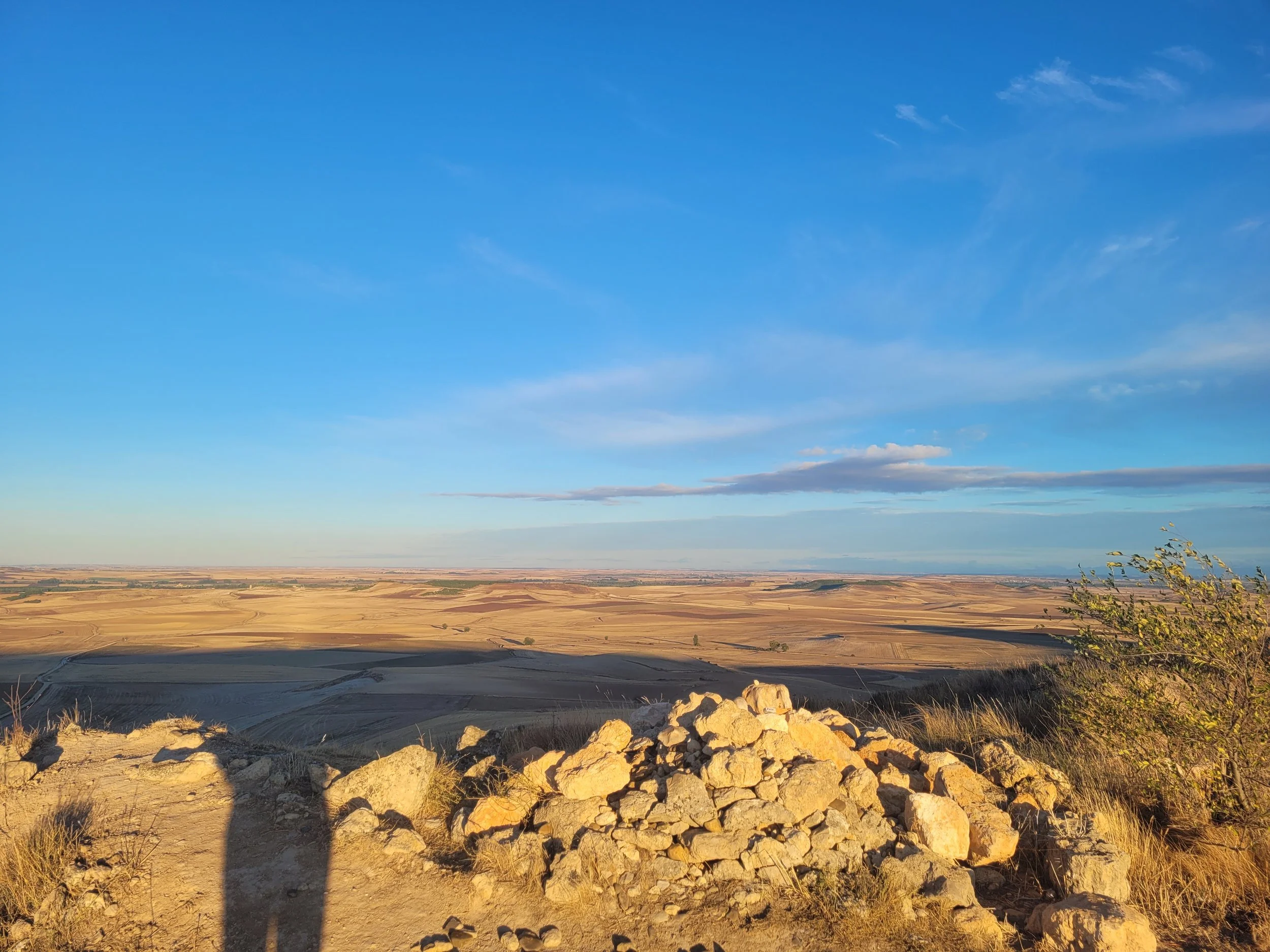 Westlich von Burgos verändert sich die Landschaft merklich. Die Gegend im kastilischen Hochland zwischen Burgos und León wird Nordmeseta genannt. Sie ist beinahe wüstenähnlich trocken und flach und bis auf wenige Ausnahmen, wie den Alto de Mostelares, gibt es kaum noch Anhöhen. Man schaut so weit das Auge reicht über braune Felder und Wiesen hinweg. Und auch der vorausliegende Weg scheint unendlich zu sein.
