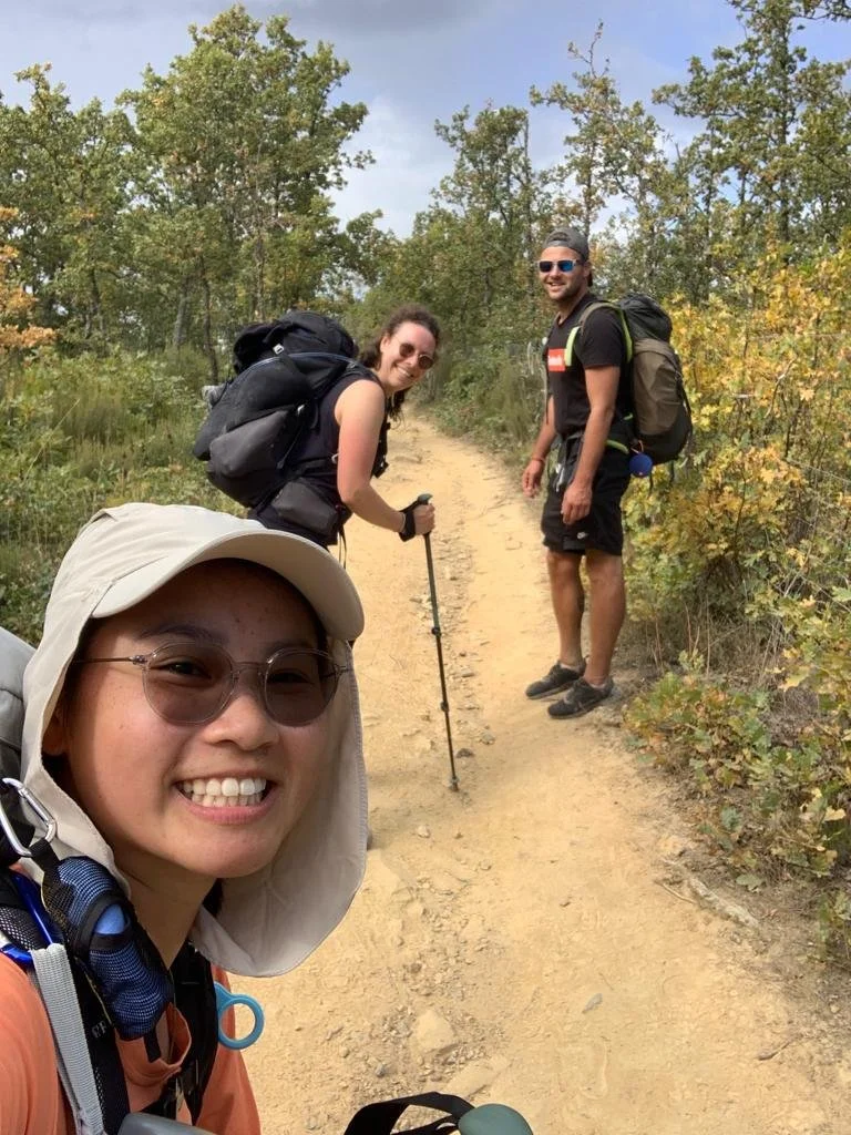 Und schließlich boten Chee aus Nordirland und Janis aus Lettland mir an, die nächsten Kilometer gemeinsam zu gehen, ganz in meinem Tempo, um auf meinen Fuß achtzugeben und uns gegenseitig Gesellschaft zu leisten. Und das war der Beginn einer wundervollen Zeit. Denn es blieb nicht bei dieser einen gemeinsamen Tagesetappe. Chee, Janis und ich bildeten ein internationales Trio, das von anderen PilgerInnen irgendwann The Chillers genannt wurde. Weil wir quasi jede Möglichkeit für eine Kaffeepause nutzten, beim Wandern laut unsere Lieblingsmusik hörten und mitsangen und morgens nur selten wussten, wo wir abends wirklich ankommen würden. Auch die Vorzüge des Rucksacktransports lernten wir schnell zu schätzen. Wir genossen im wahrsten Sinne des Wortes unsere Sweet Time, alles war unheimlich entspannt und zwanglos.